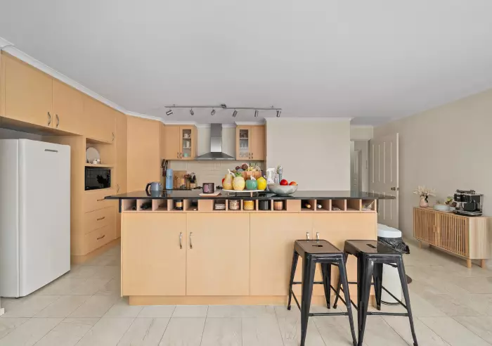 • Stylish, fully equipped kitchen with stone benchtops, ample storage, and stainless-steel appliances