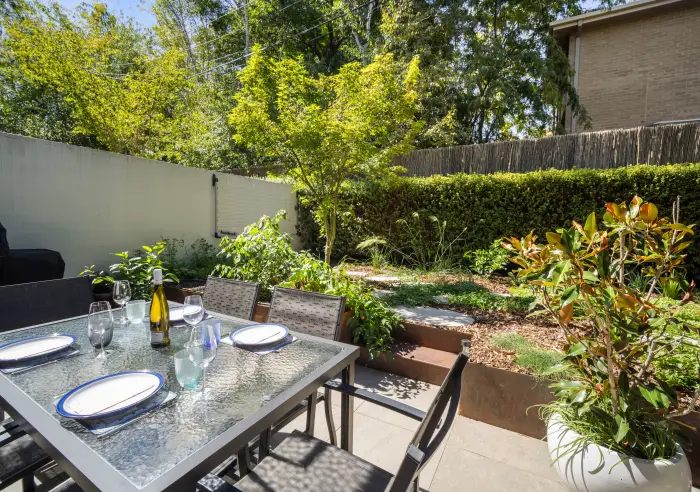 A private outdoor area with a stunning low-maintenance garden extends your living space, perfect for entertaining guests, enjoying your morning coffee, or unwinding in the evening.